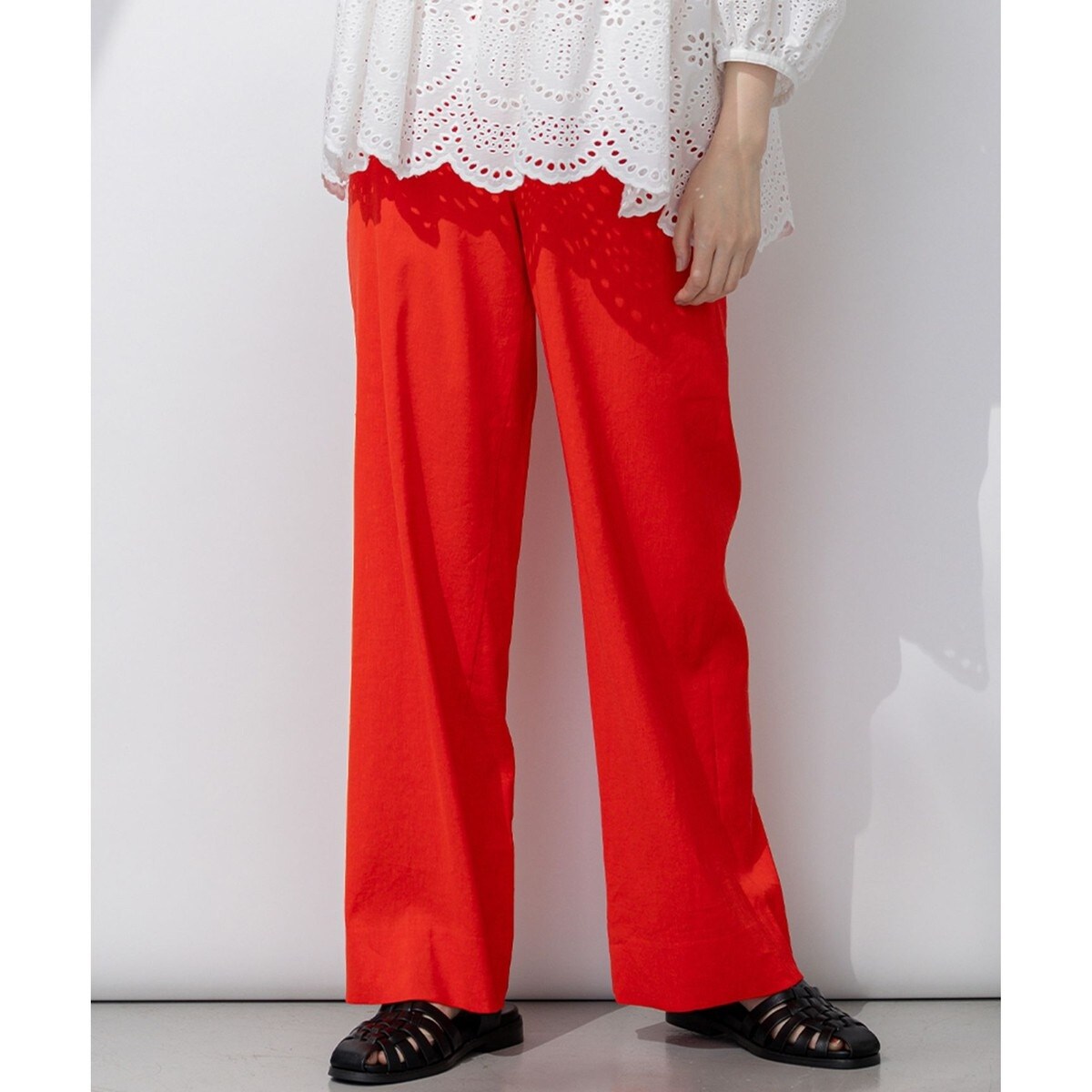 程よいワイドシルエットと後ゴム仕様でストレスなく穿けるワイドパンツ。リネン混のさらっとした着心地で春夏にぴったりのアイテムです。ワイド過ぎない程よいシルエットなので、様々なトップスに合わせやすくスッキリと着こなしていただけます。ベーシックカラーから穿くだけで気分が上がる華やかなカラーまでバリエーション豊富に取り揃えております。同素材のジャケットとのセットアップ対応も可能です。カラーはON/OFF使えるブラック(#005)、ネイビー(#075)、清涼感のあるホワイト(#001)、柔らかなベージュ(#033)、洒落感のあるダークブラウン(#035)のベーシックカラー5色に、オレンジ(#020)、イエロー(#040)、ダークグリーン(#065)のアクセントカラー3色を加えた、全8色展開です。