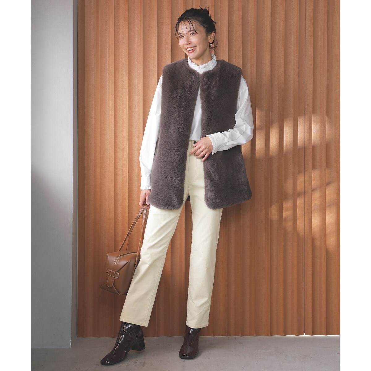 ■素材細畝の上品なコーデュロイ素材。横方向にストレッチ性に優れ、安心感のあるしっかりとした生地でありながら窮屈感なく着用頂けます。繊細な毛羽で光沢感が大人っぽさを演出します。