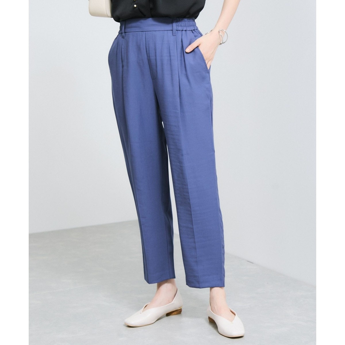 ウエストのワンタックから流れるセンタープレスが脚長効果あり!