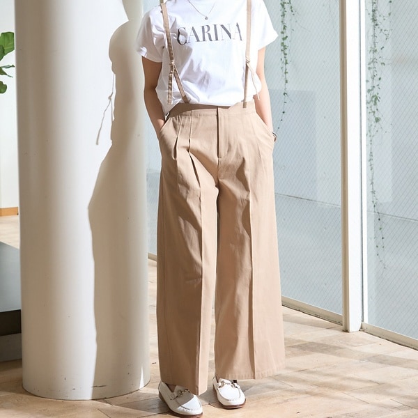 サマンサモスモス サスペンダー付き タックパンツ テーパードパンツ サス付き