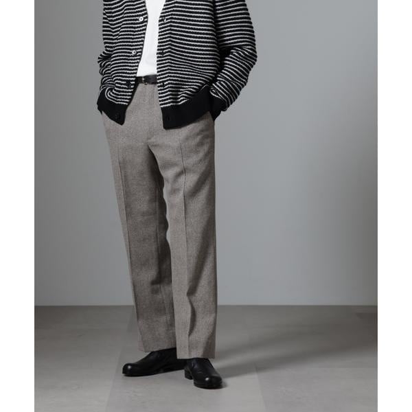 トレンド感のあるツイード素材を使用したノータックトラウザーズ。同素材のハリントンジャケットと合わせるトラッドスタイルがおすすめ。