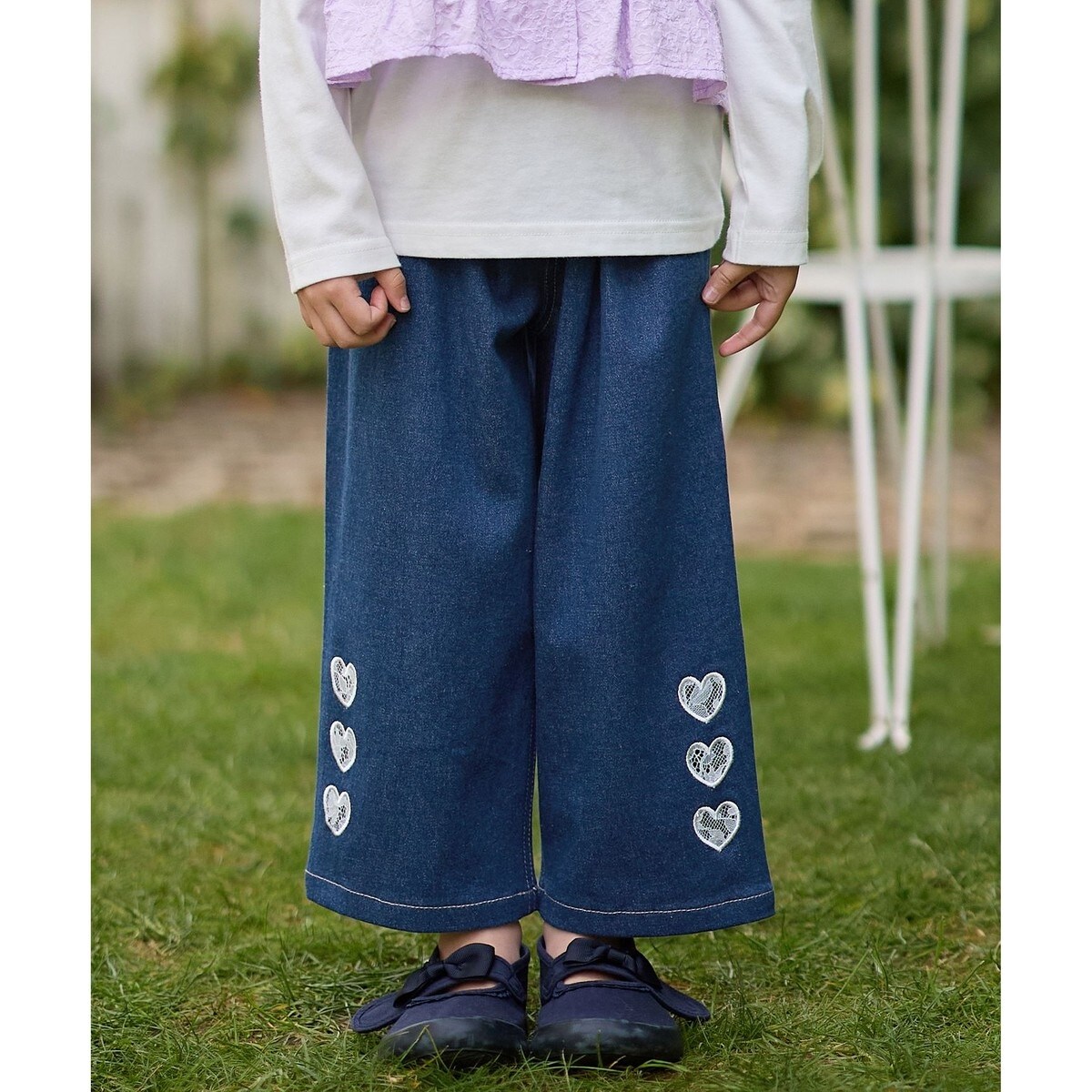 キッズ/デニム/ワイドパンツ/ハート/レース/通園/通学/人気/デイリー/女の子/ガール/サスティナブル