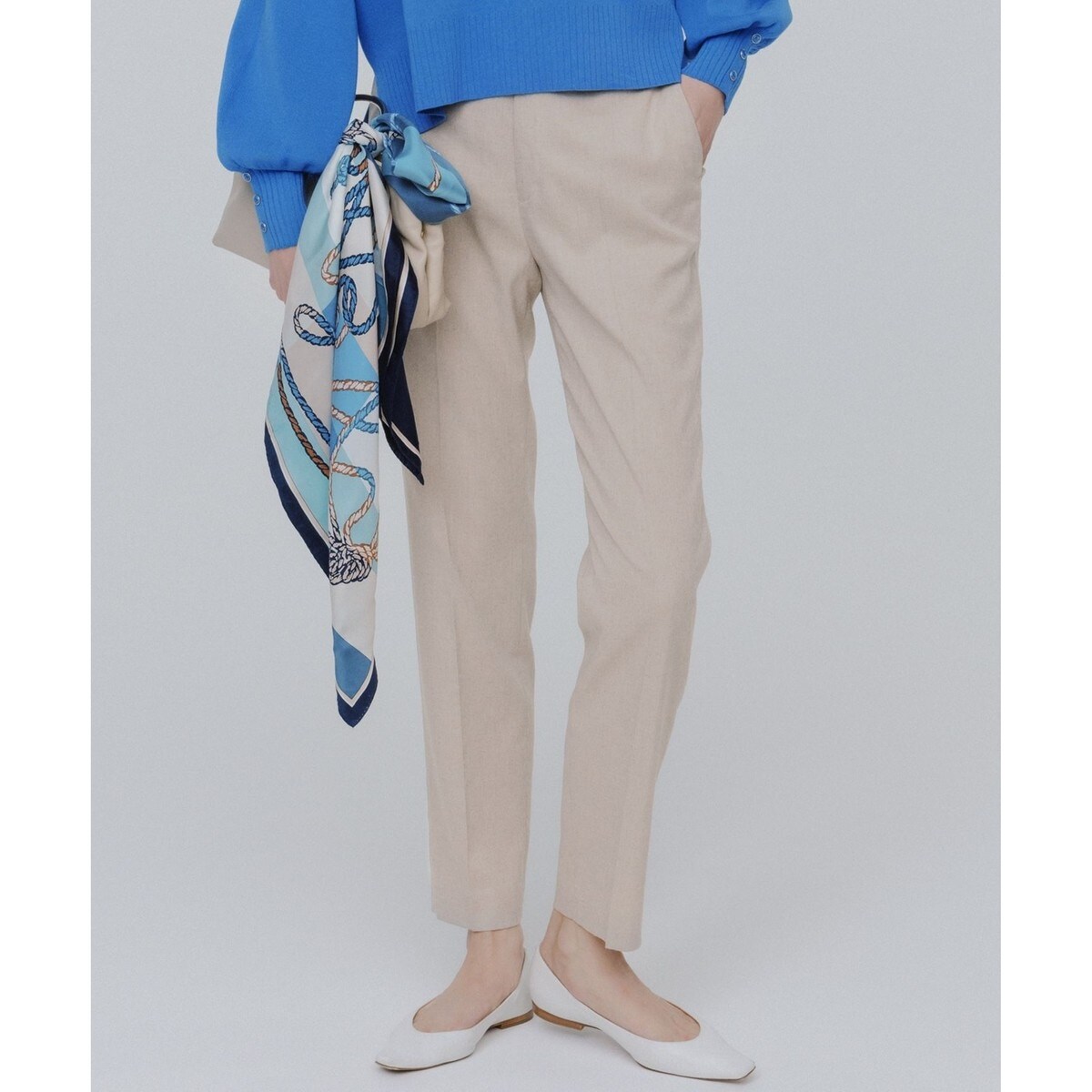 いつでも1本は常備していたいスタイリッシュな23区定番のテーパードパンツ。脚をさらにきれいに見えるよう裾幅を少しだけ細くアップデートしました。どんなトップスにも合わせやすく、オフィスでもデイリーにも万能に活躍できる様、すっきりとした細身なシルエットに仕上げています。ウエストの後ろにはゴムで伸縮性を持たせ、ストレスのない穿き心地です。同シリーズのジャケットときれいめのセットアップで着たり、単品使いでブラウスと合わせても着られる、着回し力抜群のパンツです。カラーは、女性らしく清潔感溢れるベージュ(#033)、大人上品なネイビー(#075)の2色展開です。