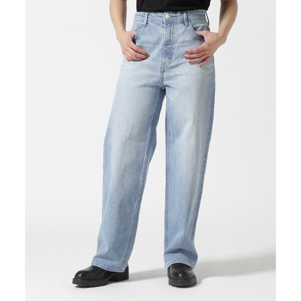 スカッとした爽やかさにこだわったクリアカラー。クリーンなUSED加工がポイントです。綺麗なサックスカラーと色落ち部分のホワイトとのコントラストが効いた爽快な人気色です。ステッチカラーが白に近いグレー色で、より爽やかな印象を引き立てます。ヒゲやスリがしっかり入っているので立体感があり、気になるお腹回りをカバーしてくれます。メリハリがあり、モモのハイライトが内側寄りに入っているので、脚がスッキリして見え、美脚見えが叶う万能な1本です。