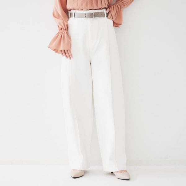 センタ―シームにステッチを入れたワイドデニム。