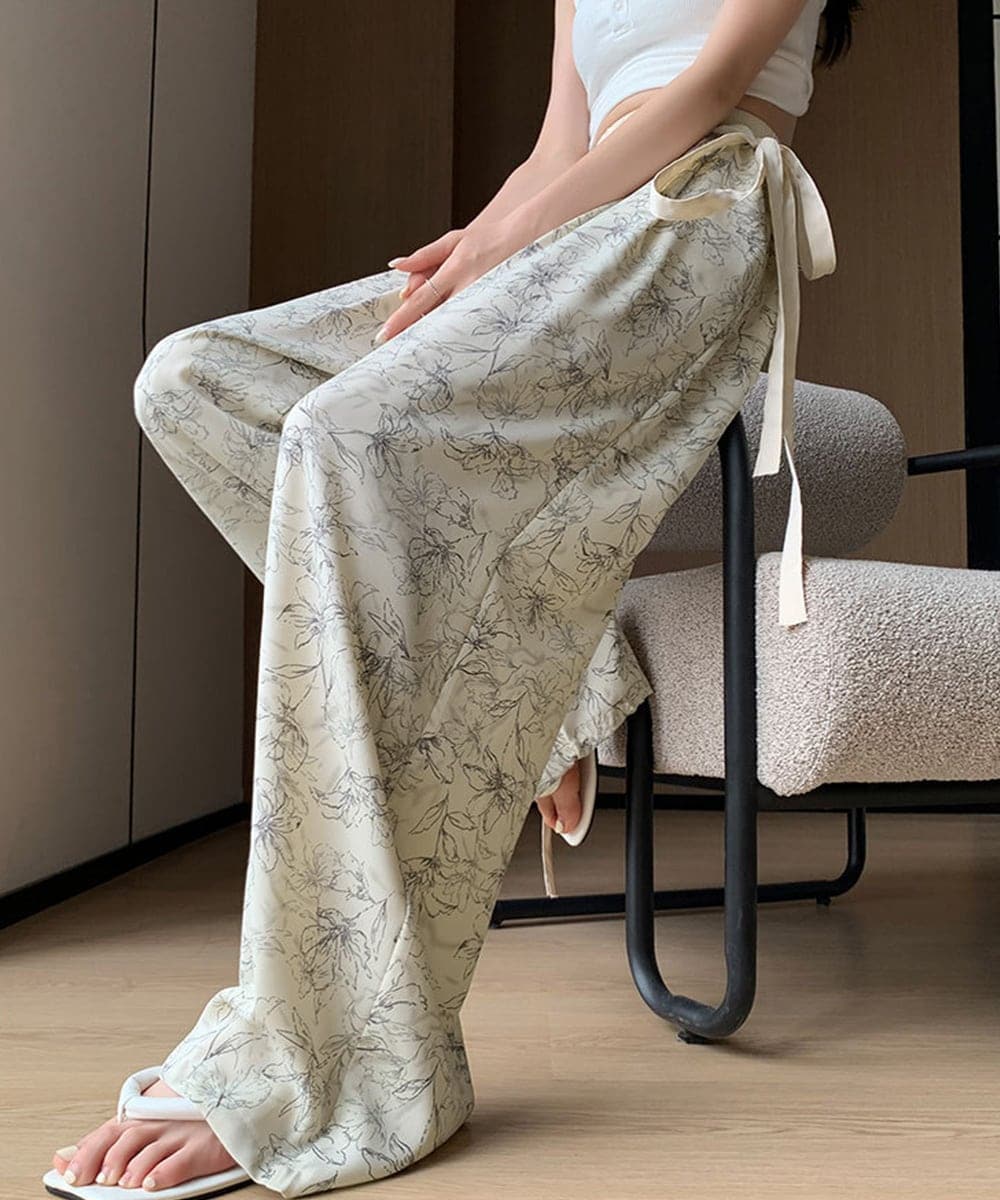 すらりとしたシルエットで脚を長く見せてくれる総柄ワイドパンツ
