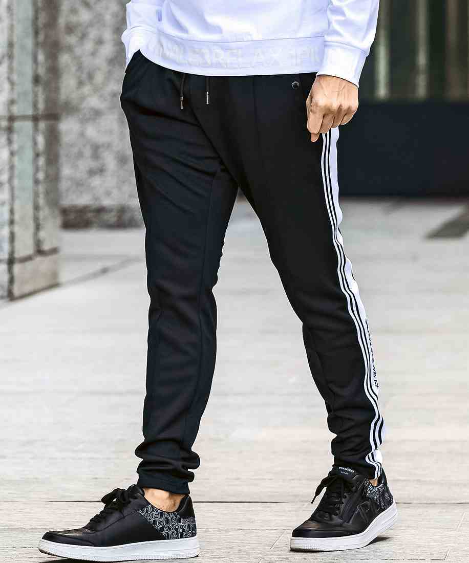 左側だけにいれたジャージテープは、後ろから前側に流動的に流れ優雅さとビジュアル性を担保。