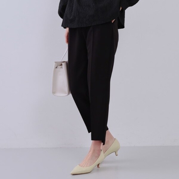・すっきりとしたタックテーパードシルエットに、裾に前後差を付けトレンド感を出したテーパードパンツ