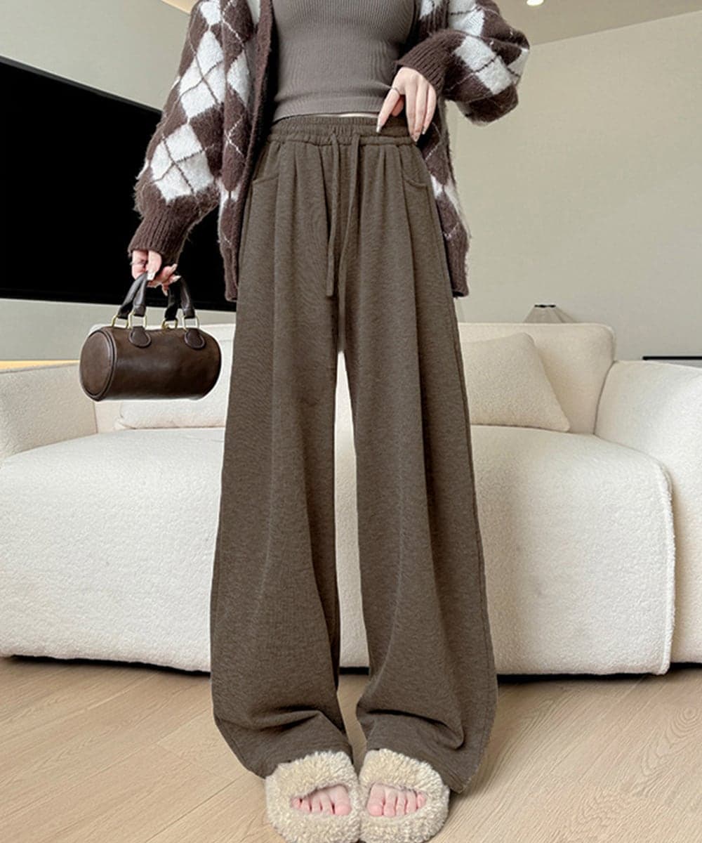 温かみのある裏起毛素材を使用した、リラックス感あふれるワイドパンツ。