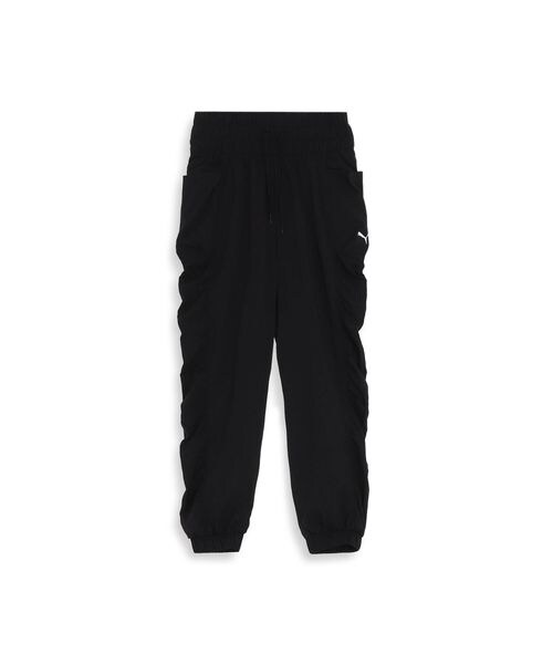 柔らかさ、肌触りの良さ、吸水速乾など機能性にこだわった素材で快適にご使用いただけます。調節可能なドローコード付きのウエストゴム仕様でストレスフリーに着こなすことも。両サイドにポケットを施し、左サイドにプーマキャットロゴのアクセントをプラスしました。