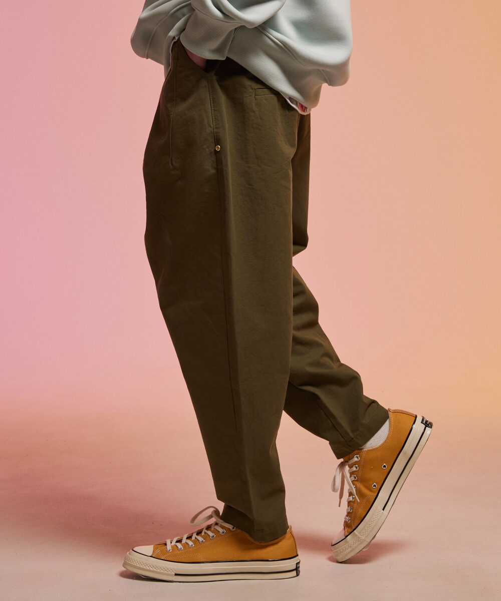 その名の通り農家の作業着からインスパイアされたパンツです。動きやすさとリラックス感を出すため股上を深くしながら裾は細めにしたワイドテーパードシルエットを採用しています。