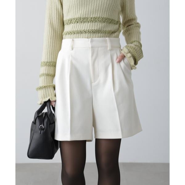 ウォーム感のある冬にぴったりなT/R素材を使用したショートパンツ。幅広い年齢層に着ていただきやすいよう股下丈を通常より長めの丈にし、ロングブーツなどと合わせて良いバランスになるよう設定しています。腰まわりはタックを2本ずつ入れているので体型カバーしてくれます。オーバーサイズのボンバージャケットやレザーブルゾンと合わせてカジュアルに。メルトンコートと合わせレディな着こなしにも。足元はブーツ合わせがおススメです。※こちらの商品はXSサイズの展開がございます。◆サイズ目安◆XSサイズ→身長150cm-152cm ウエスト57cm-59cm※モデルの着用画像の場合、光の当たり具合により、実際の色味と異なって見えることがございます。色味は、商品単体の画像をご参照ください。