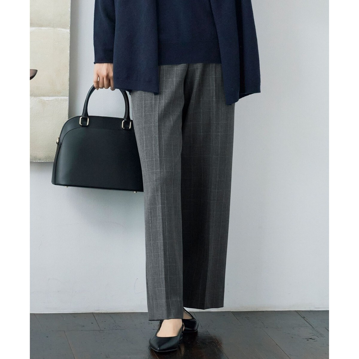 裏起毛で温かい、デイリーに活躍する定番のチェック柄ワイドパンツ■デザイン腰周りをすっきりとさせた定番のワイドパンツです。脚のラインをカバーしてくれるワイドなシルエットはトップスを選ばず合わせやすいデザインです。前のウエストベルトにはストレッチインベルという、生地に合わせて伸縮するベルト芯を入れることで、見た目はギャザーが寄らずすっきりと綺麗なのに、着用すると伸縮性があります。後ろのウエストベルトのゴムギャザー仕様と相まって、より快適な穿き心地です。秋冬らしいチェック柄が一気にシーズンムードを高めてくれます。■素材膨らみと落ち感を併せ持ったポリエステル・レーヨンの混紡糸を高密度に織り上げて作った2WAYストレッチ素材です。適度なハリ感と、着心地の良いキックバック性があります。寒い時期にも着て頂けるように裏起毛加工を施し、柔らかく温かみのある穿き心地です。ソフトでしなやかな風合いになるローズ加工と、小雨程度の水をさっと払うことができる撥水加工を施しております。日本の尾州産生地です。