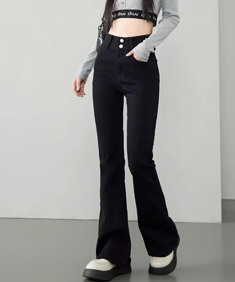 ウエストから膝まではタイトにフィットし、膝から裾にかけて徐々に広がるセミフレアデニムパンツです。