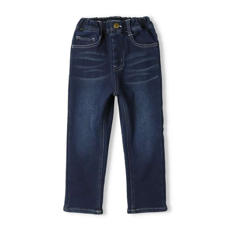 裏がベロア素材、表はデニム素材のボンディングタイプのデニムパンツ。ストレートシルエットでどんなコーディネートにも合わせやすい!暖かく、適度にストレッチがきいて伸びもあり、かっこよく履けるアイテム。シンプルなデザインで男の子も女の子もユニセックスで履けます!【アイテム】シンプル ベーシック 無地 カジュアル お洒落 オシャレ かっこいい かわいい 可愛い 普段着 お外着 お外遊び着 デイリーウェア お出かけ着 ロング丈 長丈 長ズボン フル丈 ボトムス 子ども こども 男児 男の子 ボーイズ キッズ ベビーサイズ トドラーサイズ 幼稚園 保育園 小学校 通園 通学 小学生 2024年秋冬物新作 丸高衣料 紺色 ネイビー キルト ムージョンジョン ジーンズ ジーパン 女児 ガールズ 女の子 男女兼用 ユニセックス