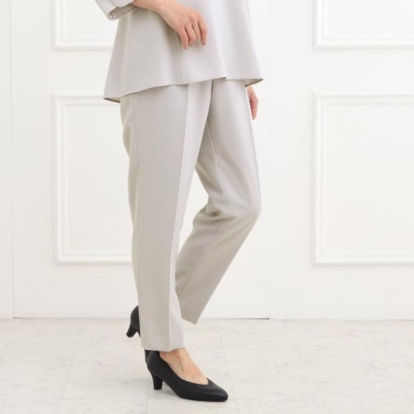 洗える ナチュラルビューティベーシック パンツスーツ ノーカラー グレージュ M
