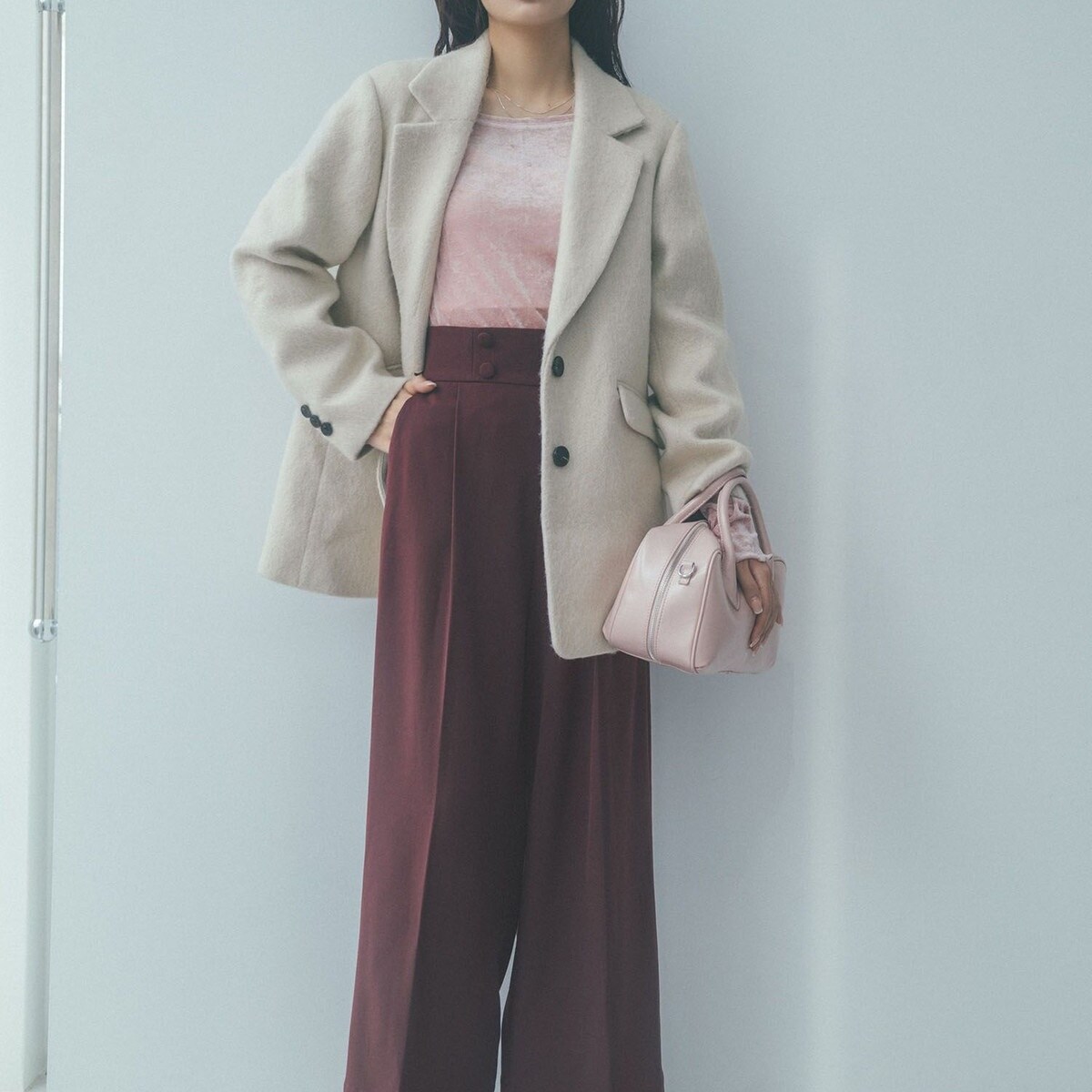 VIS 【美warm】ストレッチ釦付きワイドパンツ/スラックス