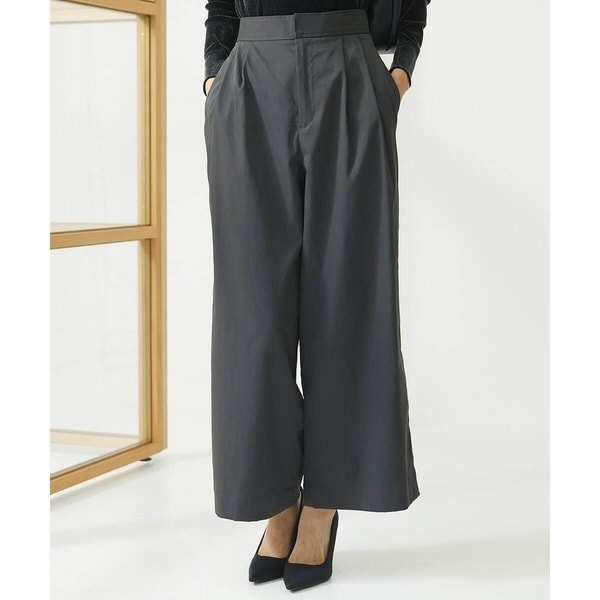 トレンド継続中のワイドパンツを大人向けにちょうど良いバランスで仕上げました。ボリュームを抑えた腰回りと広がり過ぎない裾幅で、トップスを選ばない1枚です。