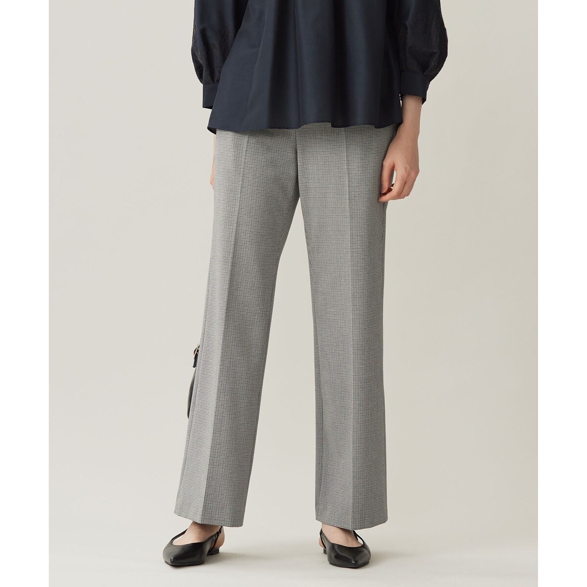 デイリーに活躍するすっきりシルエットのチェック柄ストレートパンツ■デザイン程よい太さですっきりとした印象のストレートシルエットのパンツです。よりトレンドを感じられるバランスでトップスとコーディネートでき、ベーシックなデザインなので1枚持っていると重宝するデザインです。ウエスト部分にギャザーを入れずにストレッチ性を持たせるwaist-clear(ウエストクリア)の仕様により、快適さとシルエットの美しさを両立させました。カジュアルにもキレイめにも合わせやすく、デイリーに活躍します。秋冬らしいチェック柄が一気にシーズンムードを高めてくれます。【waist-clear(ウエストクリア)とは】オンワード技術による開発で、ウエストにギャザーを入れずにストレッチ性を持たせた仕様です。ゴムギャザーボトムを穿いているかのような快適な着用感と、ウエスト周りやヒップの美しいシルエットを作り出します。■素材膨らみと落ち感を併せ持ったポリエステル・レーヨンの混紡糸を高密度に織り上げて作った2WAYストレッチ素材です。適度なハリ感と、着心地の良いキックバック性があります。ソフトでしなやかな風合いになるローズ加工と、小雨程度の水をさっと払うことができる撥水加工を施しております。日本の尾州産生地です。