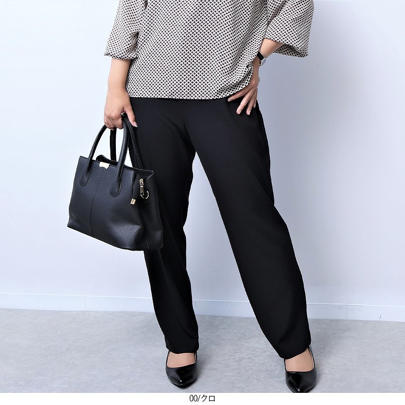 【大きいサイズ】ふわもちコンパクトツイルストレートパンツ