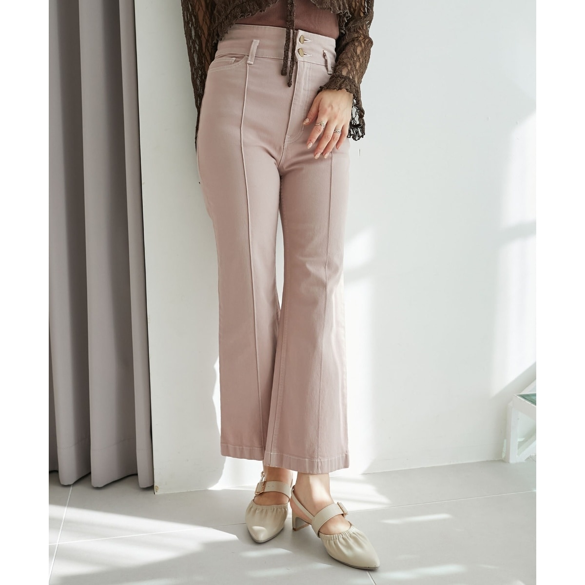 ハイウエストなのでショート丈トップスと相性抜群。