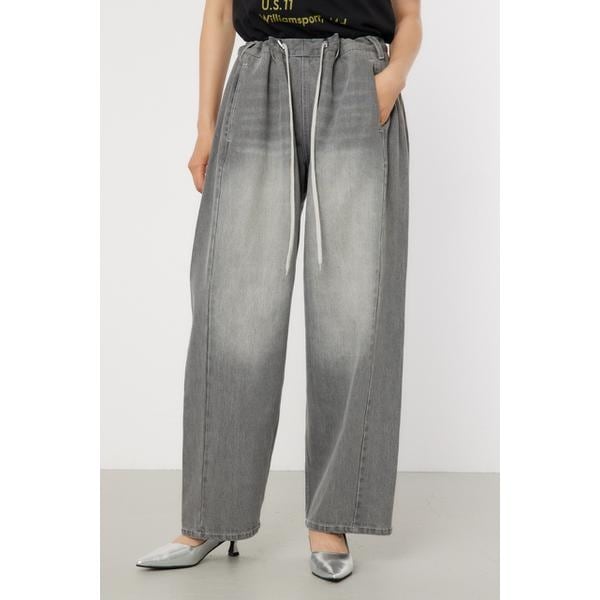 スーパーワイドシルエットがトレンド感MAXなデニムワイドパンツ。ウエストをギュッと絞ってくしゅくしゅさせて着用するのがおすすめ。夏の暑いシーズンにもピッタリな色落ちの加工感がポイントです。ボリュームのあるパンツなので、コンパクトなトップスと合わせるのが◎あえて甘めのトップスと合わせると、こなれ感がアップするアイテムです。■ポケット:あり■裏地:なし■透け感:なし■伸縮性:なし※デニム自体のウエストはゆとりがあるので自分のベストなサイズ感に調節可能です。