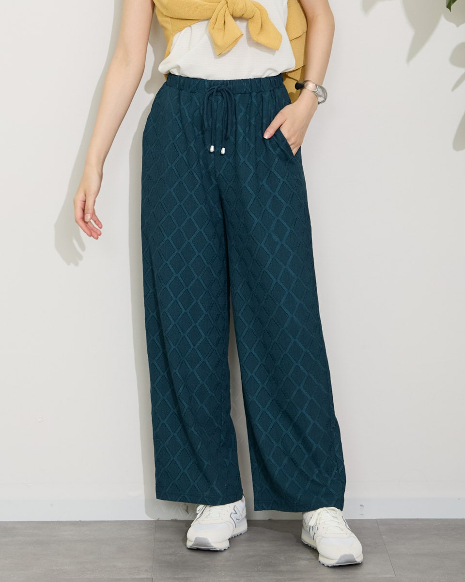 HaverSackジャガードワイドイージーパンツ/BLACK×BRNジャガード柄