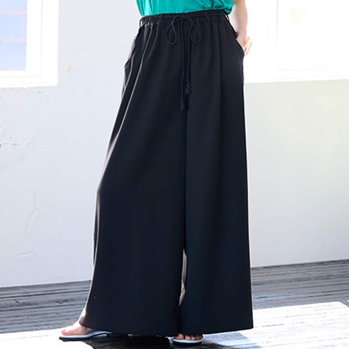 ・きれいな麻調の素材感が夏らしく涼し気なワイドパンツ