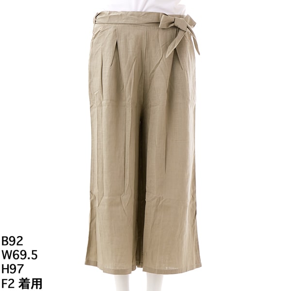 接触冷感 ガウチョパンツ リネン 夏 麻 綿 レディース パンツ 薄手 冷感 接触冷感 綿麻混 大きいサイズ ハイウエスト ロング丈 ゆったり ワイドパンツ 美シルエット ボトムス フレアパンツ ウエ#sowa6583750