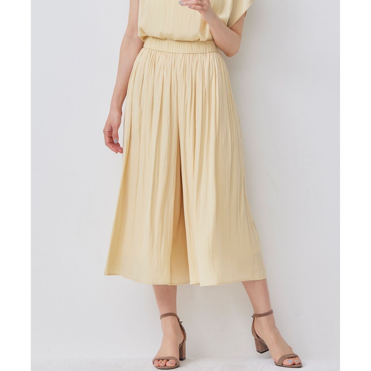 組曲定番のギャザーパンツ安心な着心地とウエストゴムのイージーなはき心地が嬉しいスカート見えパンツ