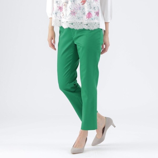 ウエストまわりをすっきりと仕上げ、着用時のシルエットにこだわったパンツです。美しく見えるよう計算された立体パターンではき心地の良いパンツです。
