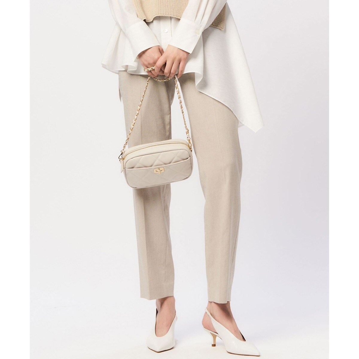 いつでも1本は常備していたいスタイリッシュな23区定番テーパードパンツ。どんなトップスにも合わせやすく、オフィスでもデイリーにも万能に活躍できる様、すっきりとした細身なシルエットに仕上げています。ウエストの後ろにはゴムで伸縮性を持たせ、ストレスのない履き心地です。同素材のジャケットとキレイ目セットアップで着たり、単品使いでカジュアルにも着こなせる、着回し抜群のパンツです。カラーは、女性らしく清潔感溢れるベージュ(#033)、大人上品なネイビー(#075)、どんなシーンにもお使いいただけるブラック(#005)の3色展開です。