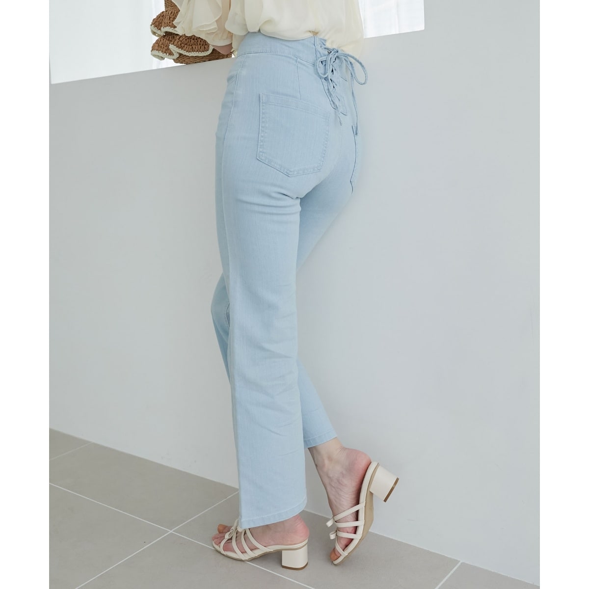 バックデザインにはレースアップを施し、後姿まで魅力的に。