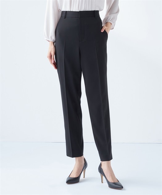 裾に向かってレッグラインを絞ったパンツ。センタープレスをあしらって、すっきりとした表情に仕上げました。ウエストの後ろにはギャザーを施し、楽な穿き心地に。きちんと感がありつつもラフに着用できる1本です。