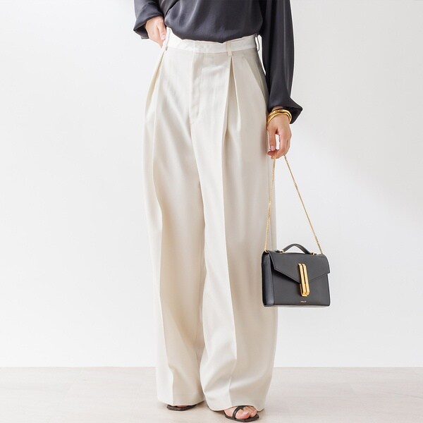 今季トレンドのマーベルトデザインを施したデザインスラックスです。
