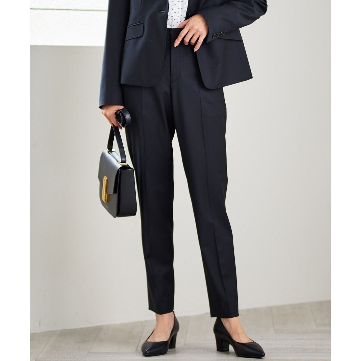 すっきりとしたシルエットのテーパードパンツ。脚を美しく見せるシルエットにこだわった1本。ジャケットとスタイリングした時にバランスの良いレングスに仕上げています。カラーはベーシックな無地のブラック(#005)、上品な印象のネイビーストライプ(#175)、細かい柄でシーンを問わないグレーミニチェック(#304)の3色展開です。