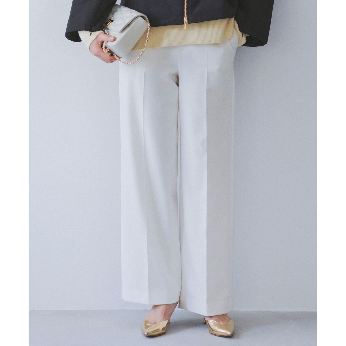 腰周りはすっきりとみせつつ、脚のラインをカバーしてくれる程よいワイドシルエットは体型を問わず穿いていただけます。どんなトップスにも合わせやすく、オフィスでもデイリーでもシーンを問わず活躍できる万能アイテムです。