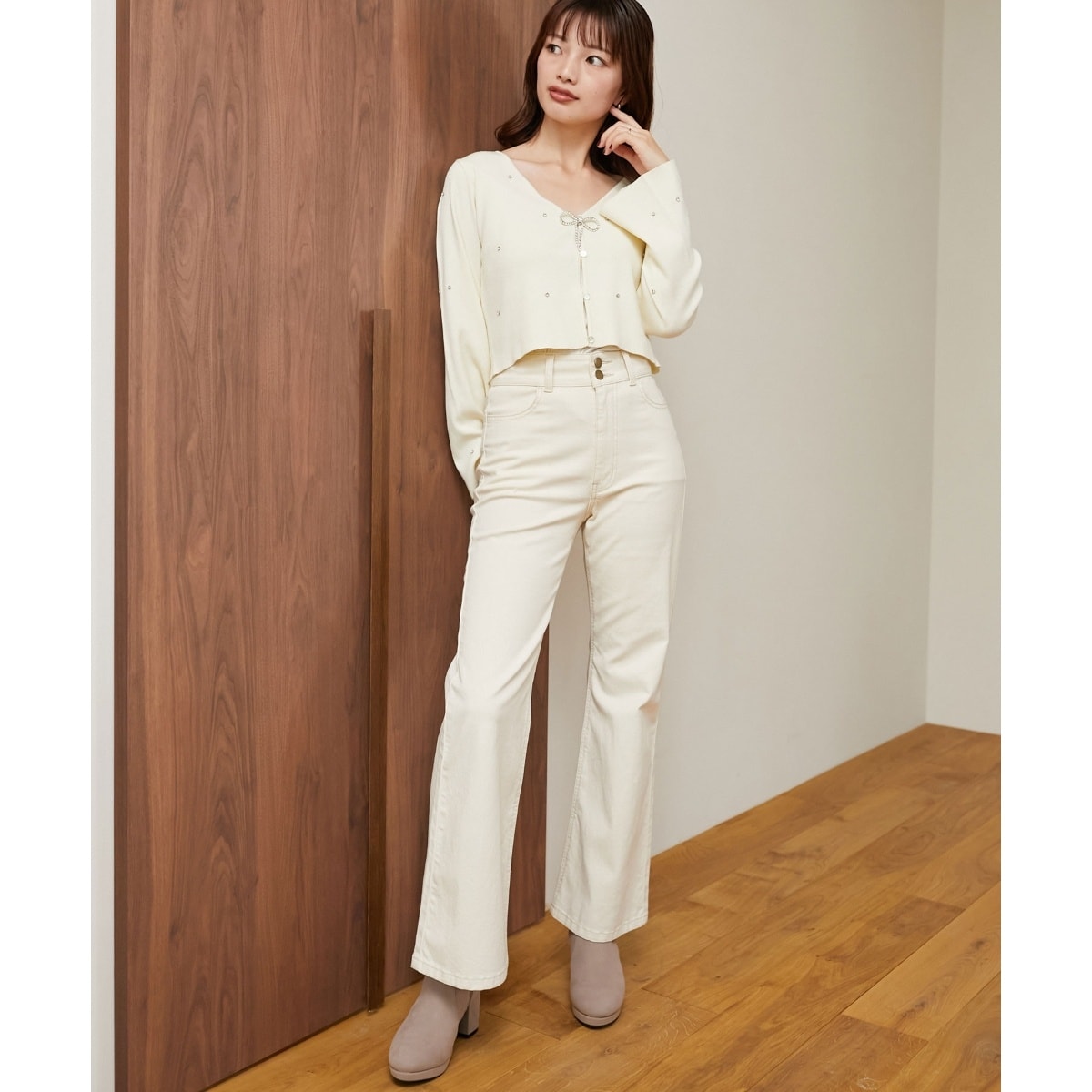 ストレッチデニムで仕上げた伸縮性のあるフレアデニムパンツ。