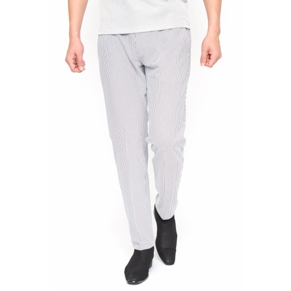 Vertical cool fabric(給水速乾)のトリコットサッカーストライプジャージーを用いたスラックス。