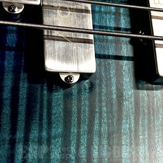 杢目の美しいフレイムメイプルを大胆に2Pでボディに使用し、ウェンジネック、ウェンジ指板という構成です。
