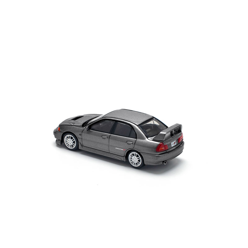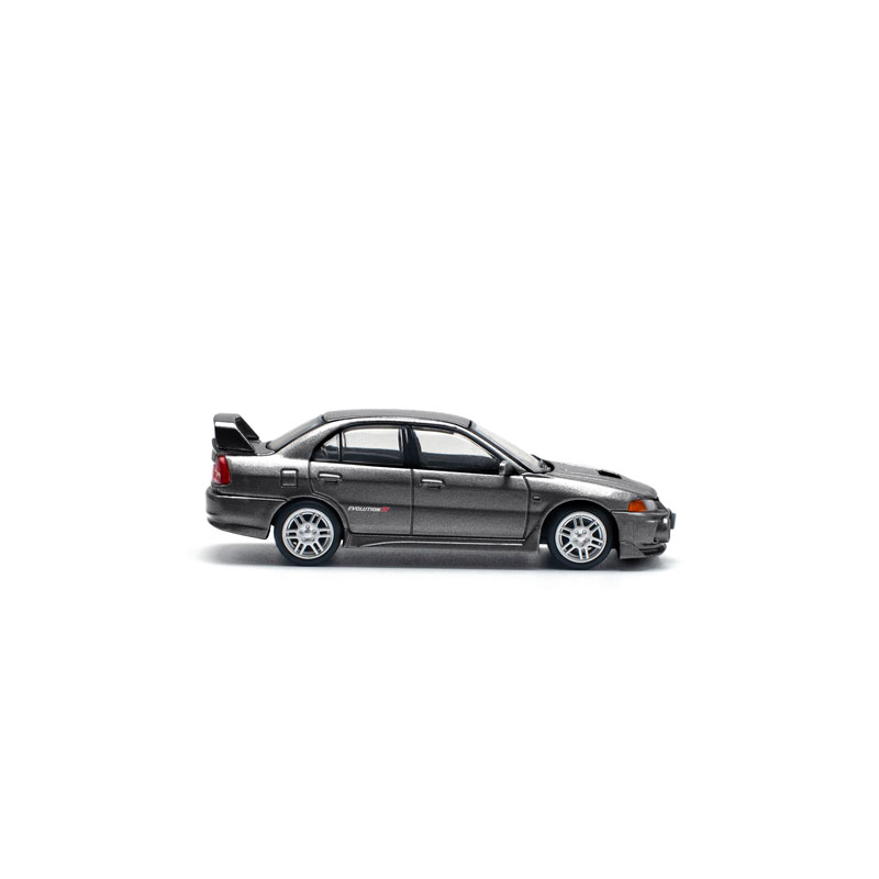 三菱が誇る名車「ランサーエボリューションIV」が、重厚感あるダークグレーカラーで1/64スケールモデルとして登場。
