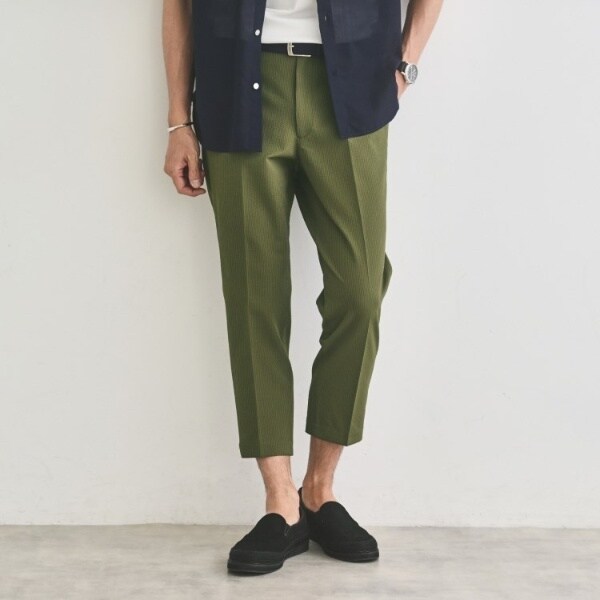 清涼感あふれる、サッカーストライプ×8分丈の盛夏に活躍する1本。