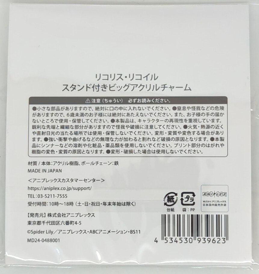アニプレックス 『リコリス・リコイル × SHIBUYA TSUTAYA』POP UP SHOP スタンド付きアクリルチャーム 全6種セット