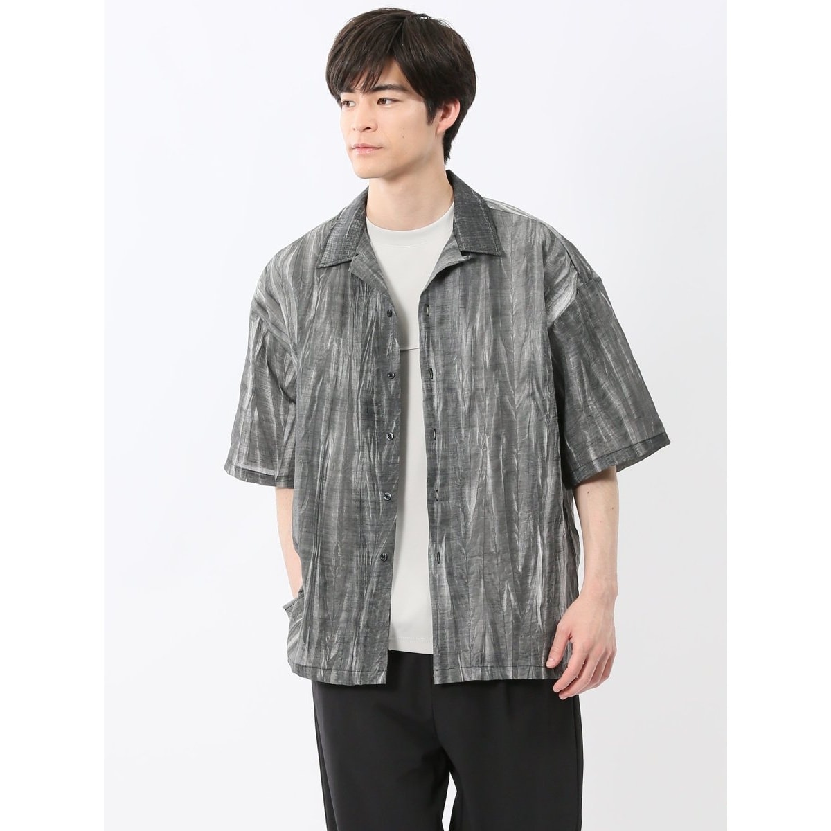 着映え度抜群、一枚で様になるオープンカラーの半袖シャツです。立体感のあるワッシャー加工とかすり染めのようなプリント柄で、夏らしい季節感を表現しています。裾部分はスリット入りのストレートです。