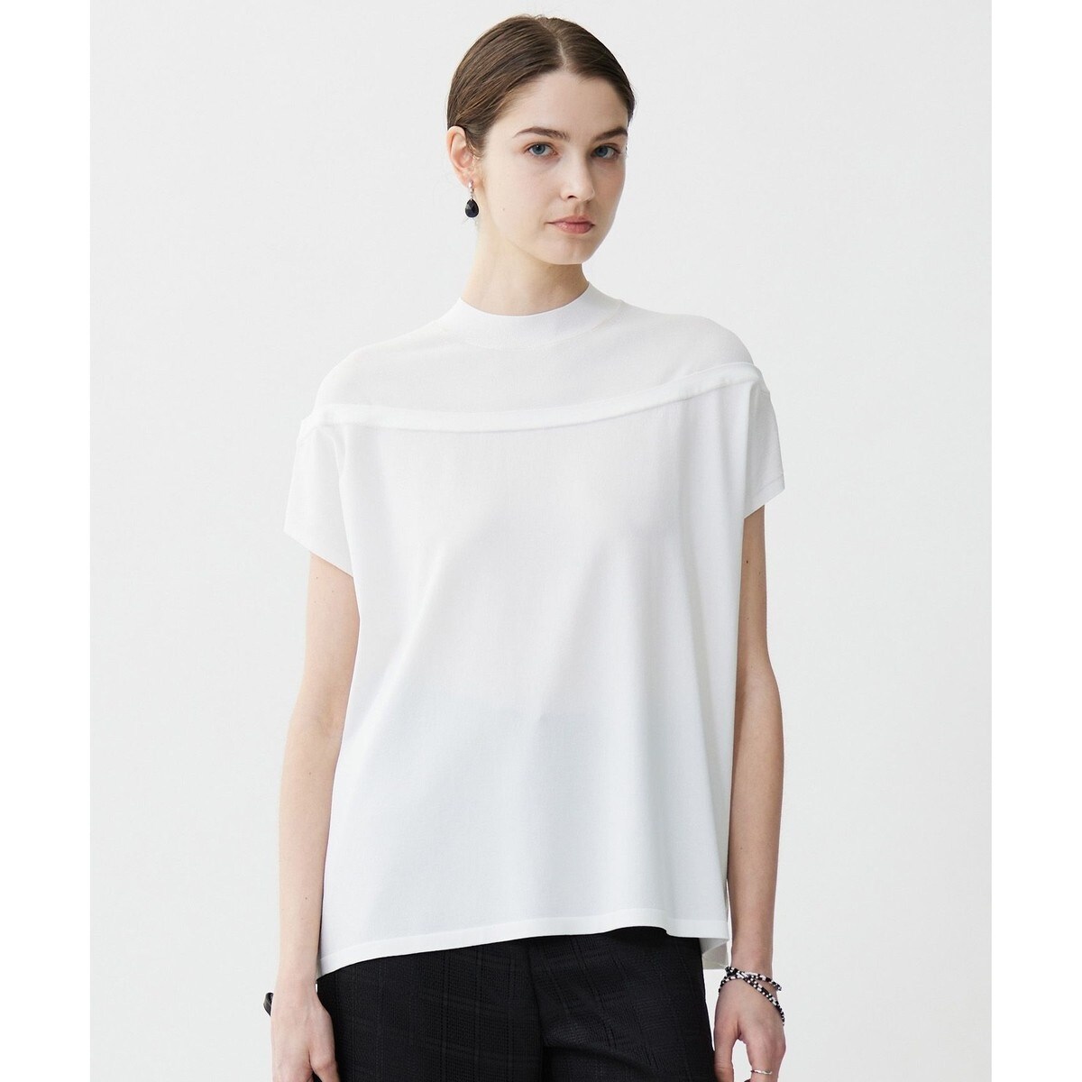 ■デザインレイヤード見えが新鮮なデザインプルオーバー。ドロップした抜け感のあるショルダーラインから袖にかけて一続きにすることで、ゆるやかで優しい印象に。気になる二の腕もカバーできるよう、腕回りのシルエットとカッティングにもこだわりました。モックネックがモードで上品見えし、お顔回りのすっきり見えも叶えてくれます。一枚でサマ見えすること間違いなしのICBらしさが光るニットTEEです。
