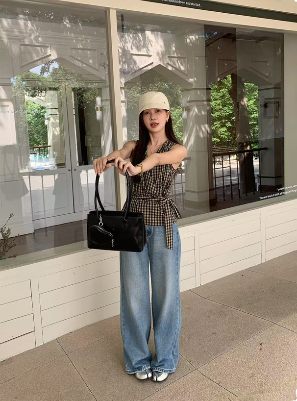 チェック柄ビッグリボンキャミソールビスチェ[tg865]