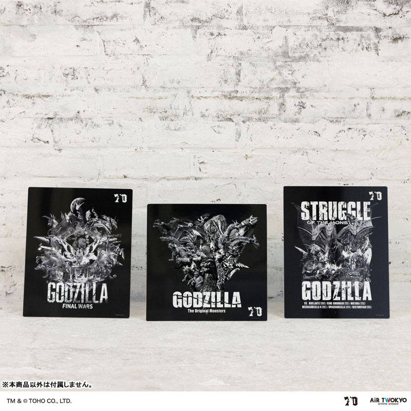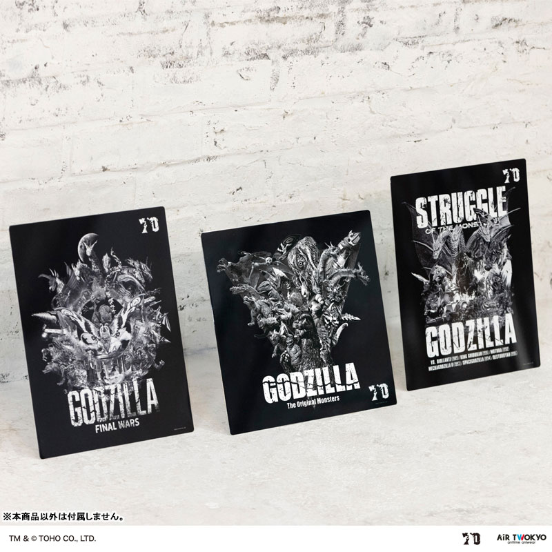 ゴジラファン必見の70周年記念メタルプレートが登場! 種類は「ゴジラ FINAL WARS」。 デザインには、人気怪獣たちがコラージュされており、圧倒的な迫力を誇ります。 インテリアとしてお部屋を飾るのに最適なサイズです。