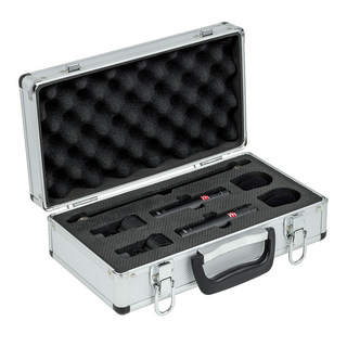 sE8 マッチド・ペアには、高精度のステレオマウントバー、2つのウインドスクリーン、2つのマイククリップ、堅牢なメタルフライトケースが付属しています。