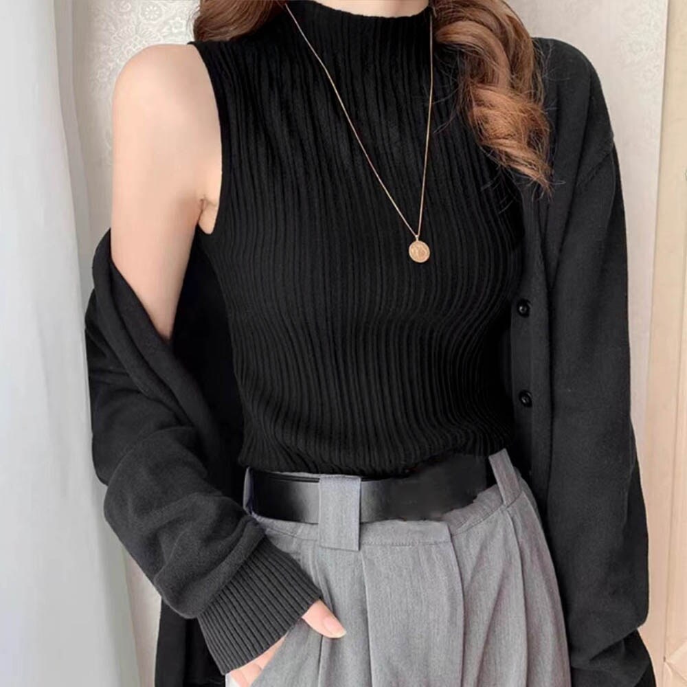 ノースリーブ仕様なので単品としてもインナーとしても使える1枚、どんなコーデにも馴染みやすい万能アイテム
