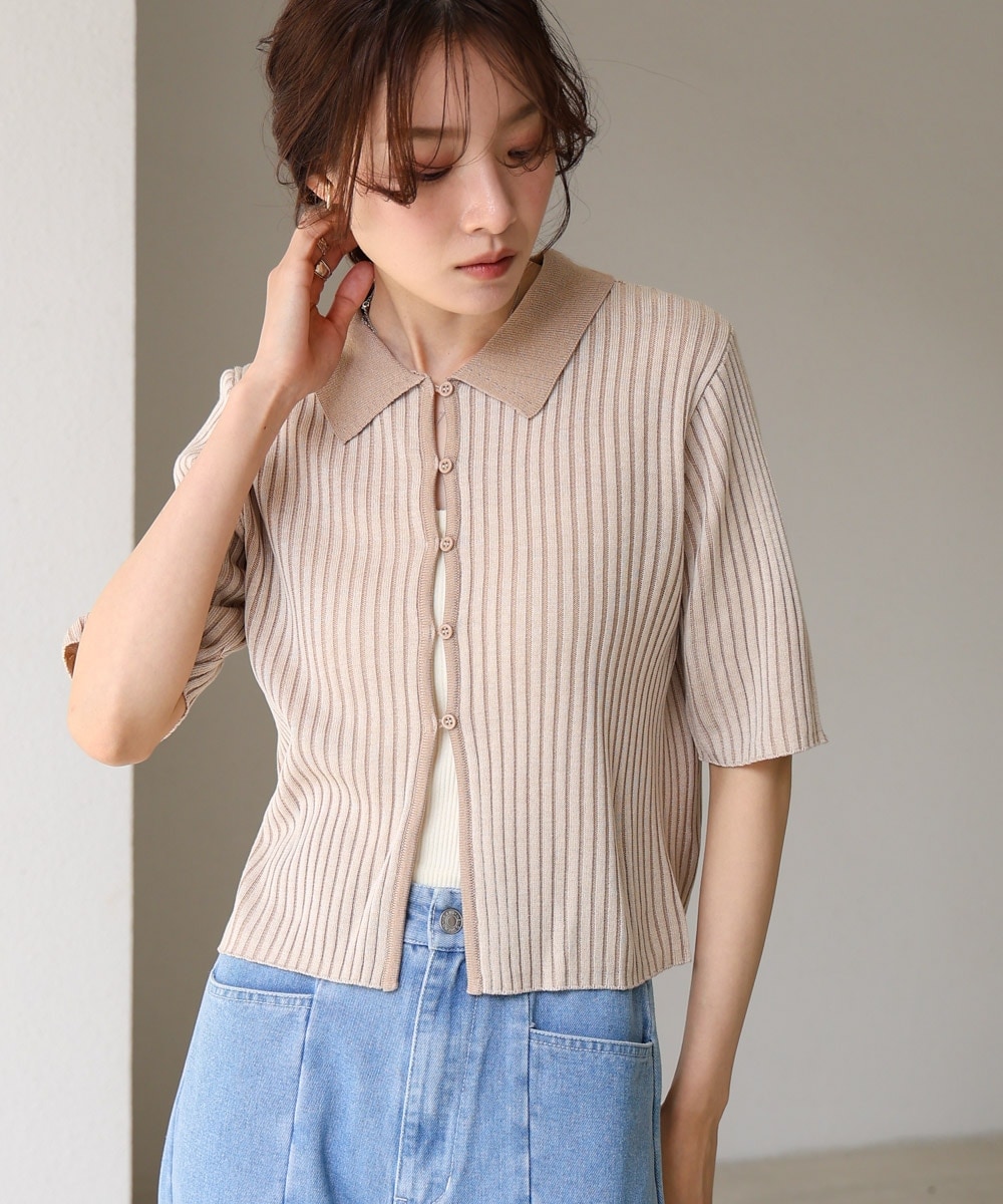 ポロ衿配色ニットカーディガン